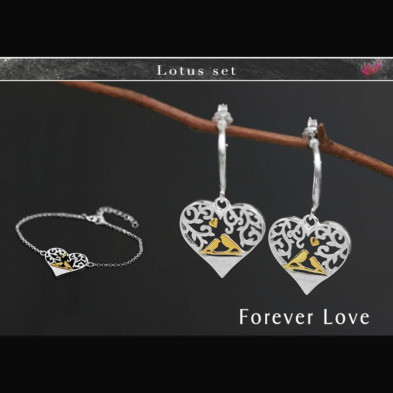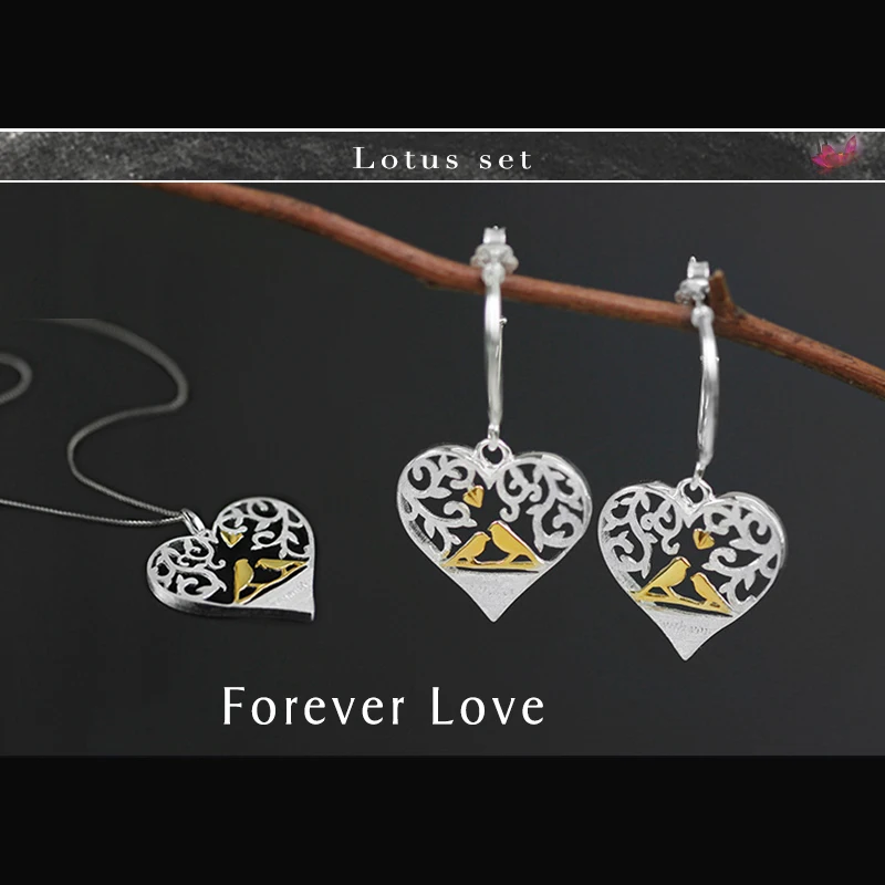 Lotus Fun Real 925 Sterling Silver Creative Handmade Fine Jewelry Forest Bird in Love Heart Shape J