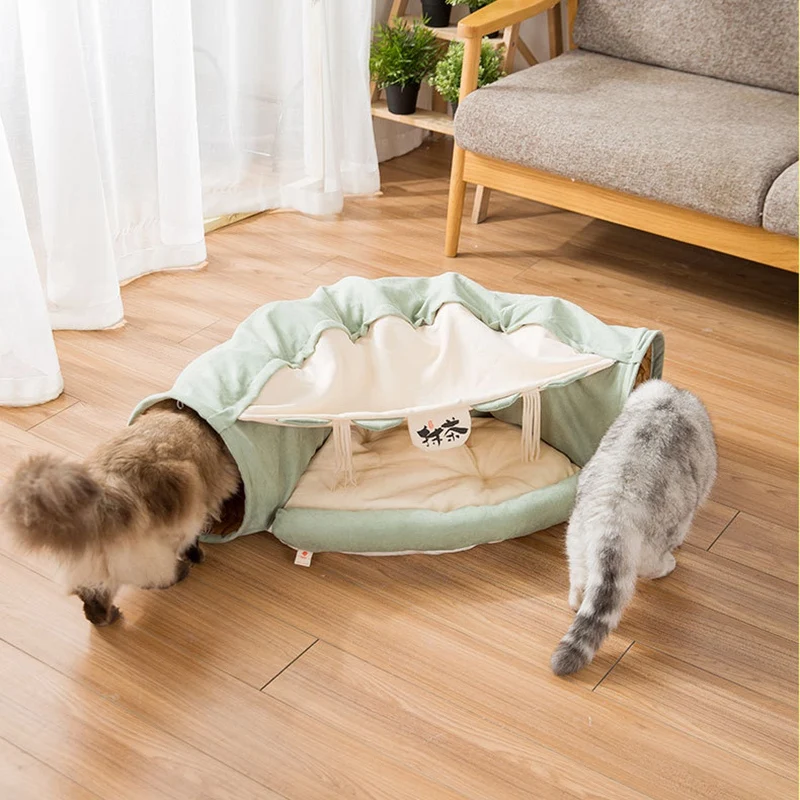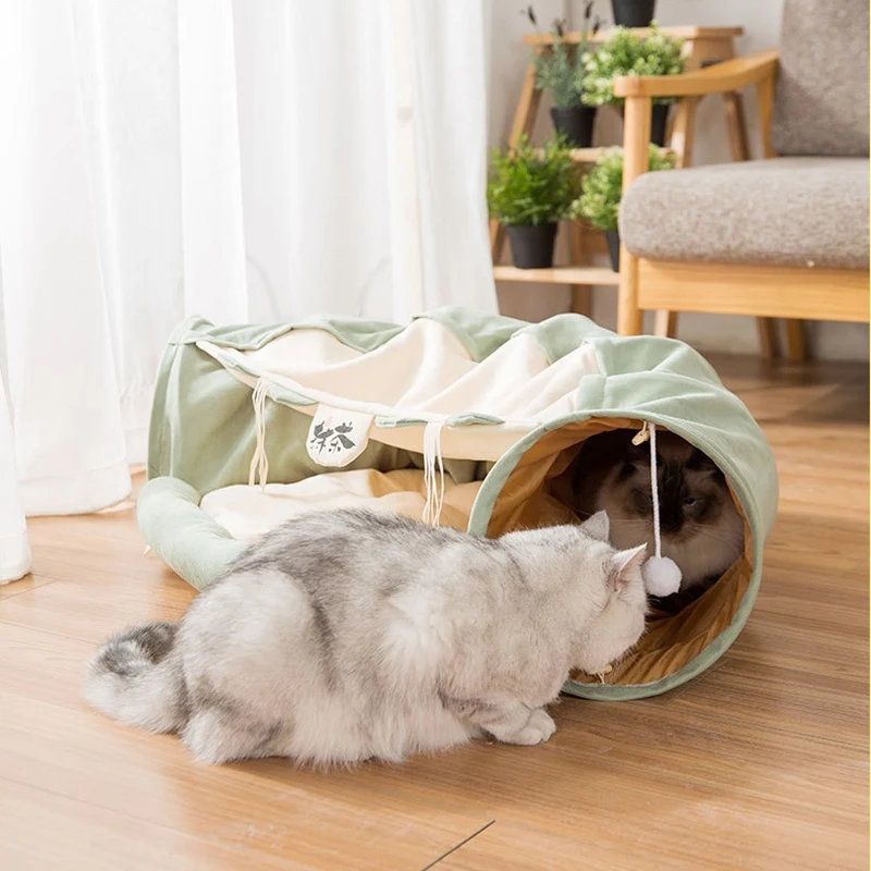 BEST QUALITY Cat Dog Tunnel Bed with Mat Collapsible 3 Way Cat Tube Condo Play Toy with Peek Hole Fun Ball Indoo