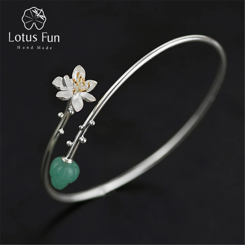 REVIEW TOP SELLER Lotus Fun Real 925 Sterling Silver Natural Aventurine Handmade Fine Jewelry Delicate Lotus Whisper