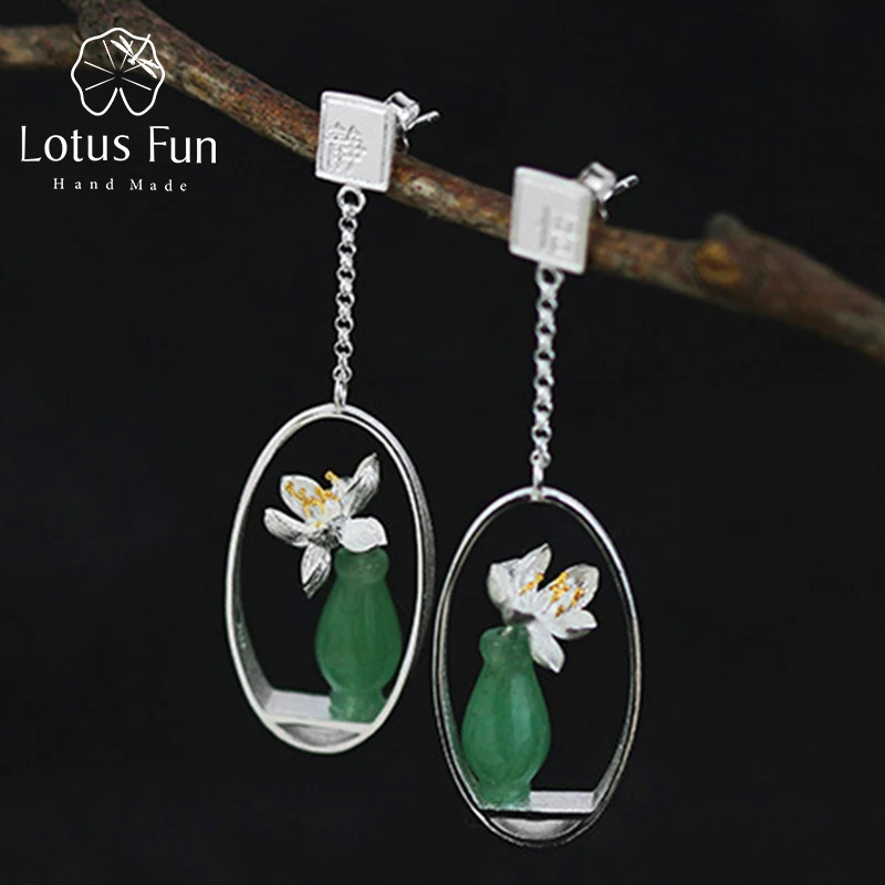 Review Lotus Fun Real 925 Sterling Silver Earrings Natural Stone Creative Handmade Fine Jewelry Lotus Whis