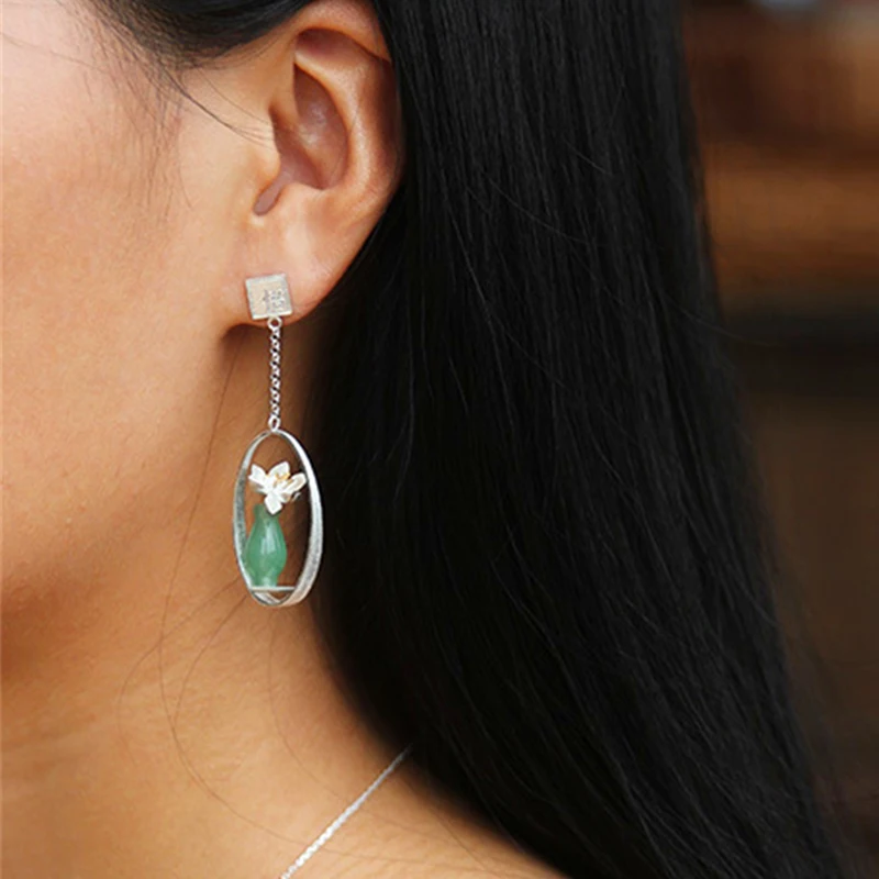Lotus Fun Real 925 Sterling Silver Earrings Natural Stone Creative Handmade Fine Jewelry Lotus Whis